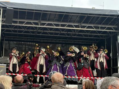 Der Sonntag, den 08.02.2026 stand dann ganz im Zeichen der heimischen Fasnet: Beim eigenen Rathaussturm in Leonberg wurde das Rathaus traditionsgemäß übernommen. Im Anschluss verwandelte sich der Leonberger Marktplatz beim Guggentreffen in eine pulsierende Bühne voller Musik, Rhythmus und närrischer Begeisterung. Zahlreiche Guggenmusiken und Gäste sorgten gemeinsam mit dem Publikum für eine großartige Atmosphäre und ein eindrucksvolles Bild gelebter Fasnet.